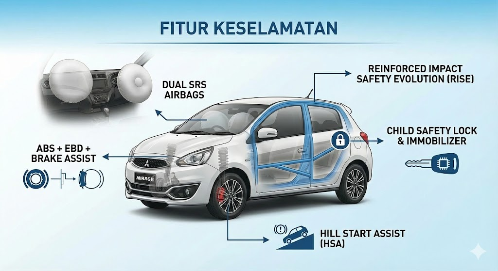 Mirage dilengkapi fitur keselamatan yang memadai untuk city car: